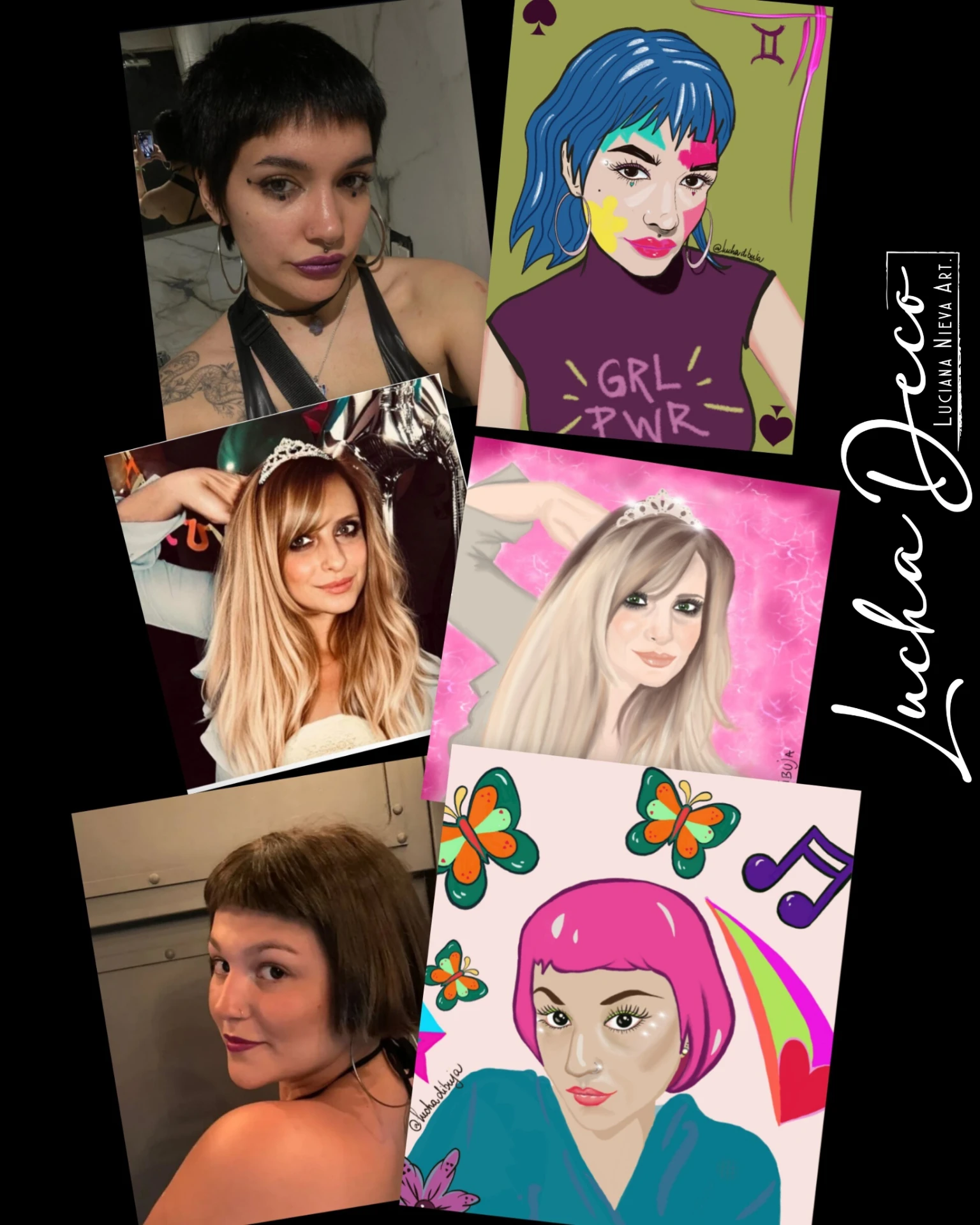Desde una o varias fotos, más información sobre algunas caracterísiticas singulares de la persona retratada se crea una ilustración original y única.